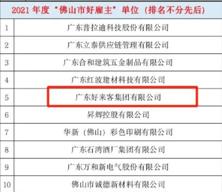 好来客集团荣获“佛山好雇主”单位称号
