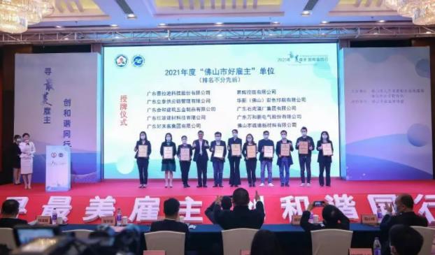 2021年12月2日上午,由佛山市人力资源和社会保障局、佛山市企业联合会共同举办的2021年度“佛山最佳/好雇主”授牌仪式暨标杆企业经验分享会顺利举行。